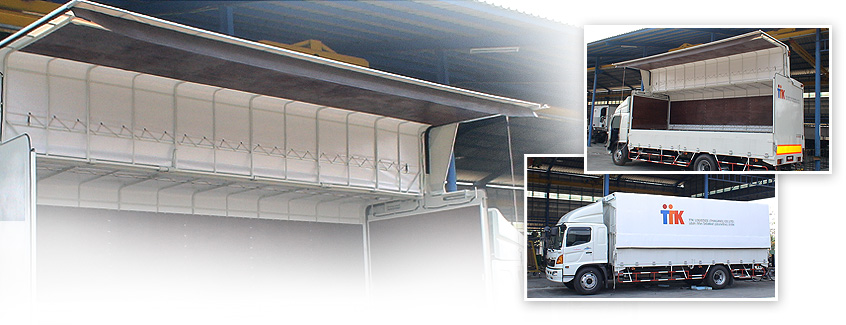 เป็นผ้าใบที่เปิด- ปิด ด้านข้างของรถบรรทุก อีกชนิดหนึ่ง โดยยกด้านข้างขึ้นบนหลังคา สะดวกในการขึ้น-ลงสินค้า เนื้อผ้าใบนำเข้าจากยุโรป สามารถทำงานพิมพ์ได้ทั้ง Ink Jet และงานสกรีน ผิวผ้าใบทำความสะอาดง่าย ป้องกันเชื้อรา และคราบสกปรกต่างๆ